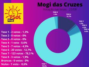 Além da vitória da Tese 7, o que também chamou a atenção foi a presença marcante de companheiras e companheiros vindo dos bairros pobres da periferia como Jardim Piatã, Vila Barreiros, Portaria do Hospital Dr Arnaldo, Jundiapeba, Conjunto Santo Ângelo.  Gente de todas de todas as idades, de muletas, de cadeiras de roda, lideranças comunitárias, evidenciando a força e a diversidade do PSOL de Mogi.