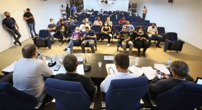 A representação da Prefeitura, composta pelo secretário de governo, Francisco Cochi, o secretário de finanças, Ricardo Abílio, secretaria de assuntos jurídicos Renata Haustein, a procuradora jurídica, Debora Moraes, defendeu a cobrança da taxa do lixo, alegando que é um projeto federal.