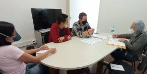 Inês Paz conversando com o secretario Claudio Rodrigues e sua equipe.