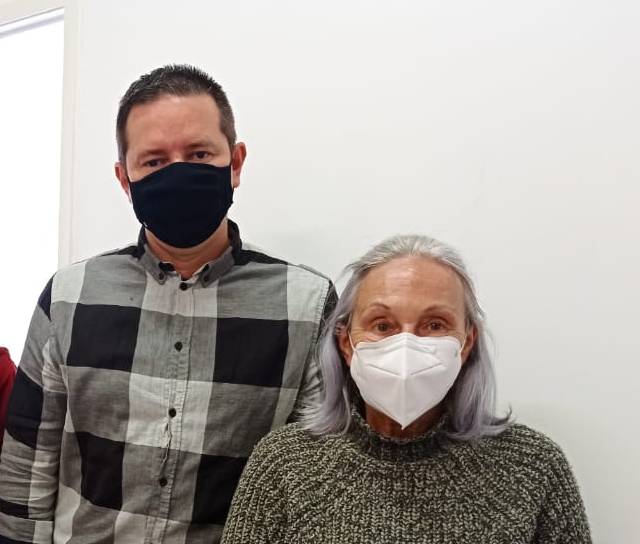 Inês Paz conversando com o secretario Claudio Rodrigues e sua equipe.