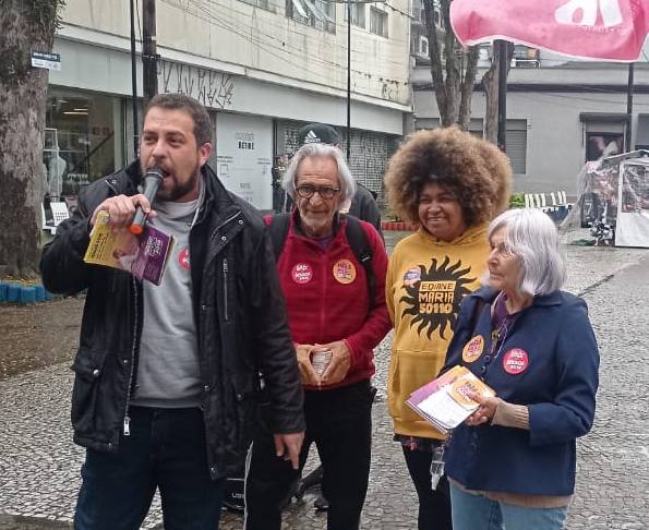 Atividade muito importante. Os candidatos discursaram na praça e a chuva não foi capaz de impedir que caminhassem pelas redondezas panfletando e conversando com o povo trabalhador.