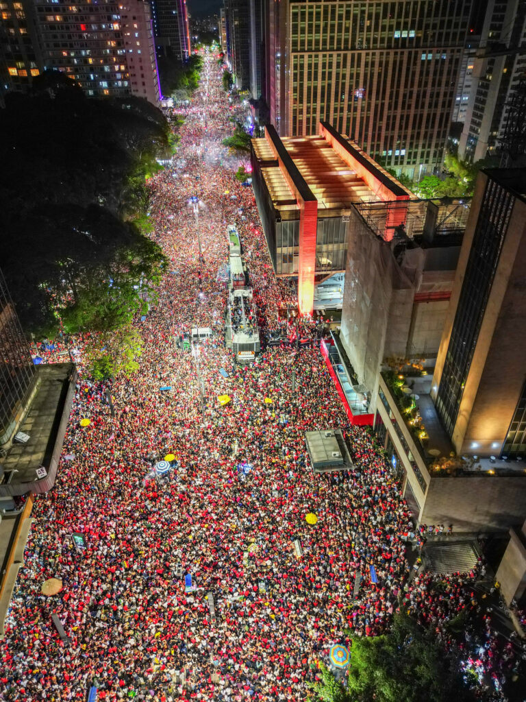 De todas as vitórias que eu tive, essa é a vitória mais consagradora, porque derrotamos o autoritarismo e o fascismo. A democracia está de volta ao Brasil. A liberdade está de volta ao Brasil. O povo vai poder sorrir outra vez“, afirmou o presidente eleito, diante de uma imensidão de gente que não cabia na Avenida Paulista.
