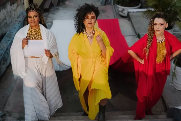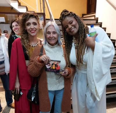 Inês Paz com Juliana Rodrigues e Helô Ferreira.