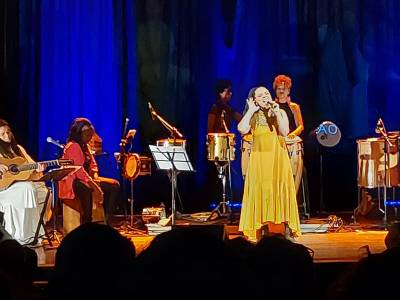 Inês Paz assiste ao show de grupo feminino e mogiano de samba