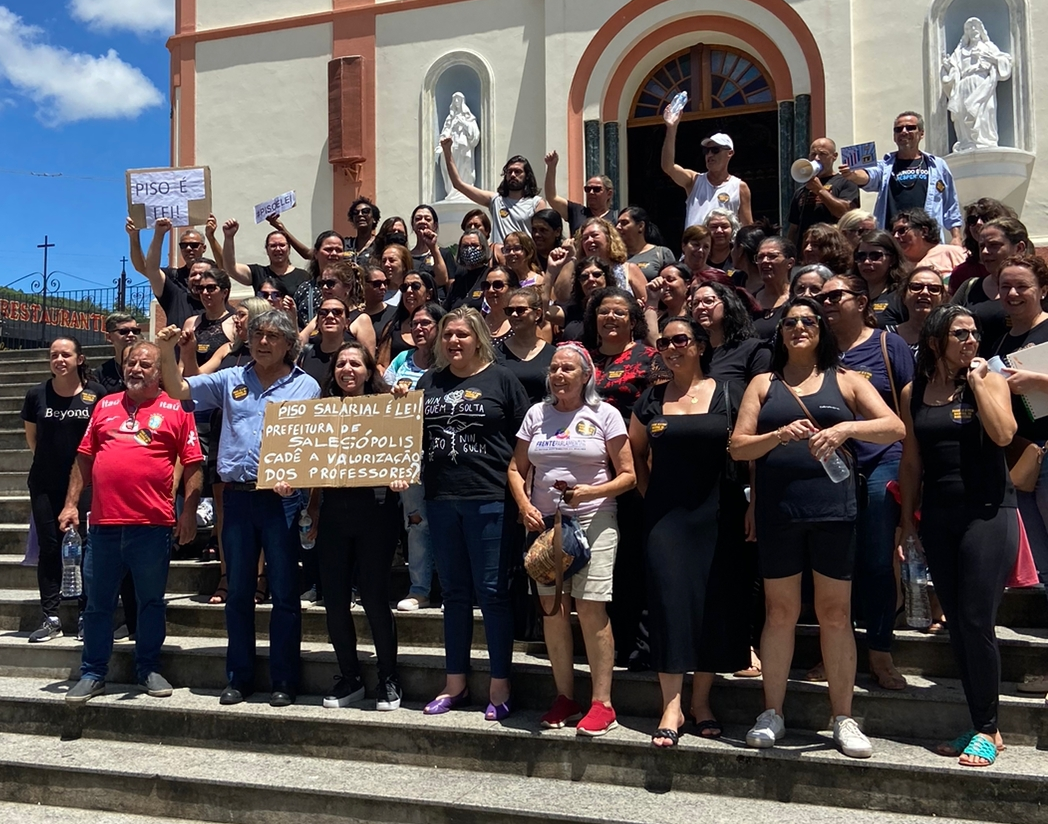Professoras e professores de Salesópolis fazem manifestação para exigir o cumprimento da lei: o pagamento do piso nacional.