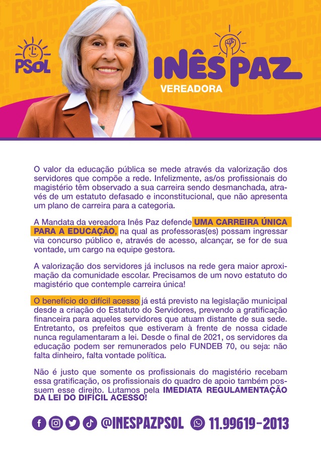 A vereadora aproveitou a oportunidade para distribuir o comunicado abaixo para as/os participantes, contendo reinvindicações dos educadores.