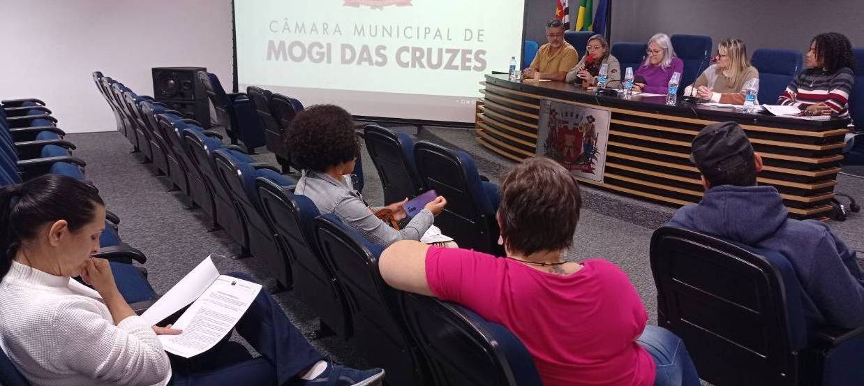 Dia 25 de julho.. Servidores da educação se reuniram no auditório da Câmara Municipal de Mogi para discutir o Projeto de Lei Complementar, PLC 8/2023, que revisa e altera o Plano de Carreira do funcionalismo e o Estatuto do Magistério.
