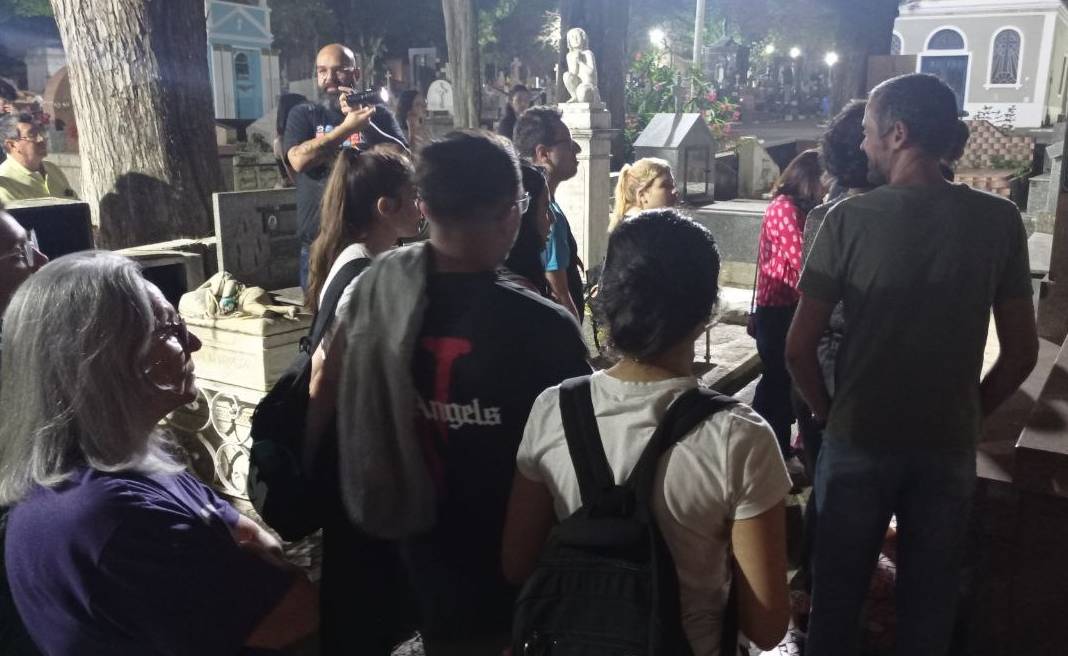 A visita foi guiada pelo professor Glauco Ricciele e teve muita contação de histórias e de lendas urbanas. destacando a presença dos povos pretos desde a sua inauguração. E com muitas curiosidades também.