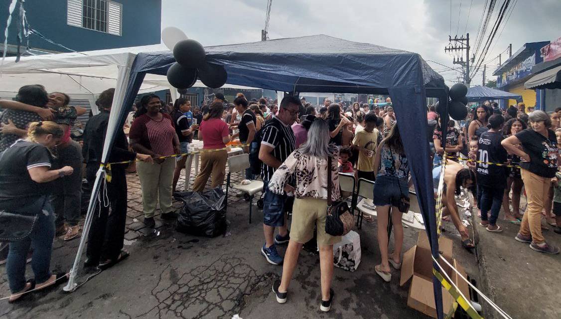 Rua fechada. Em Jundiapeba, mais uma festa para a criançada comemorar o mês de outubro. Foi no domingo 29/10. Os torcedores do Timão se organizaram para celebrar. Cheia de coisas gostosas para comer e beber.