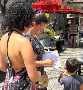 Assessora Juliana colhendo assinaturas.