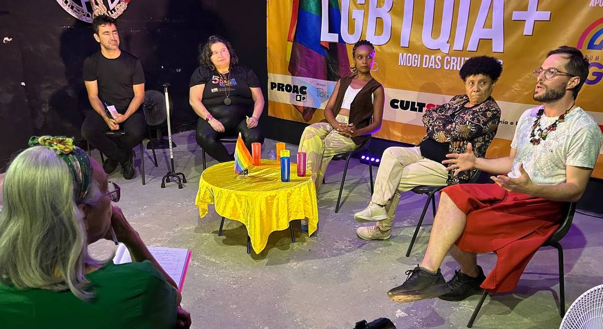 Mediado pelo atual Secretario de Cultura de Guararema Matheus Sartori, o diálogo versou sobre a vida, o trabalho e a arte da cantora e compositora Valéria Custódio, da produtora Cultural Dolores Bah, do pesquisador e performer Eduardo Colombo e da Presidenta do fórum Mogiano LGBT Regina Tavares.