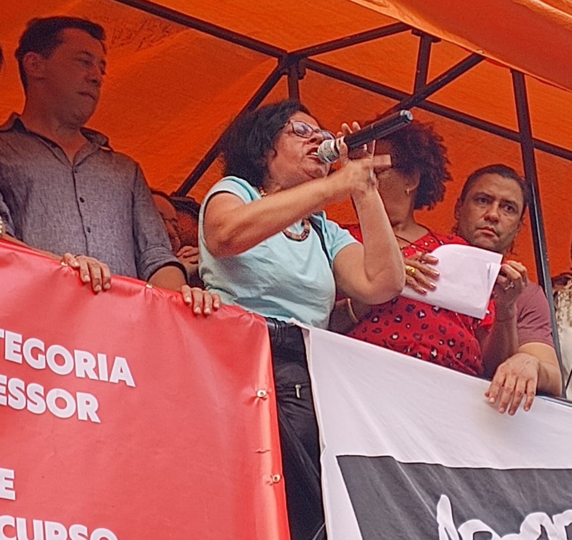 A Vereadora Inês Paz, conselheira e coordenadora da APEOSP, participou do ato e parabenizou os educadores que aderiram à paralização e estão na luta por uma educação de qualidade e pela garantia dos seus direitos, e reforçou o lema da APEOSP: “Fora Feder, fora Tarcísio!”.