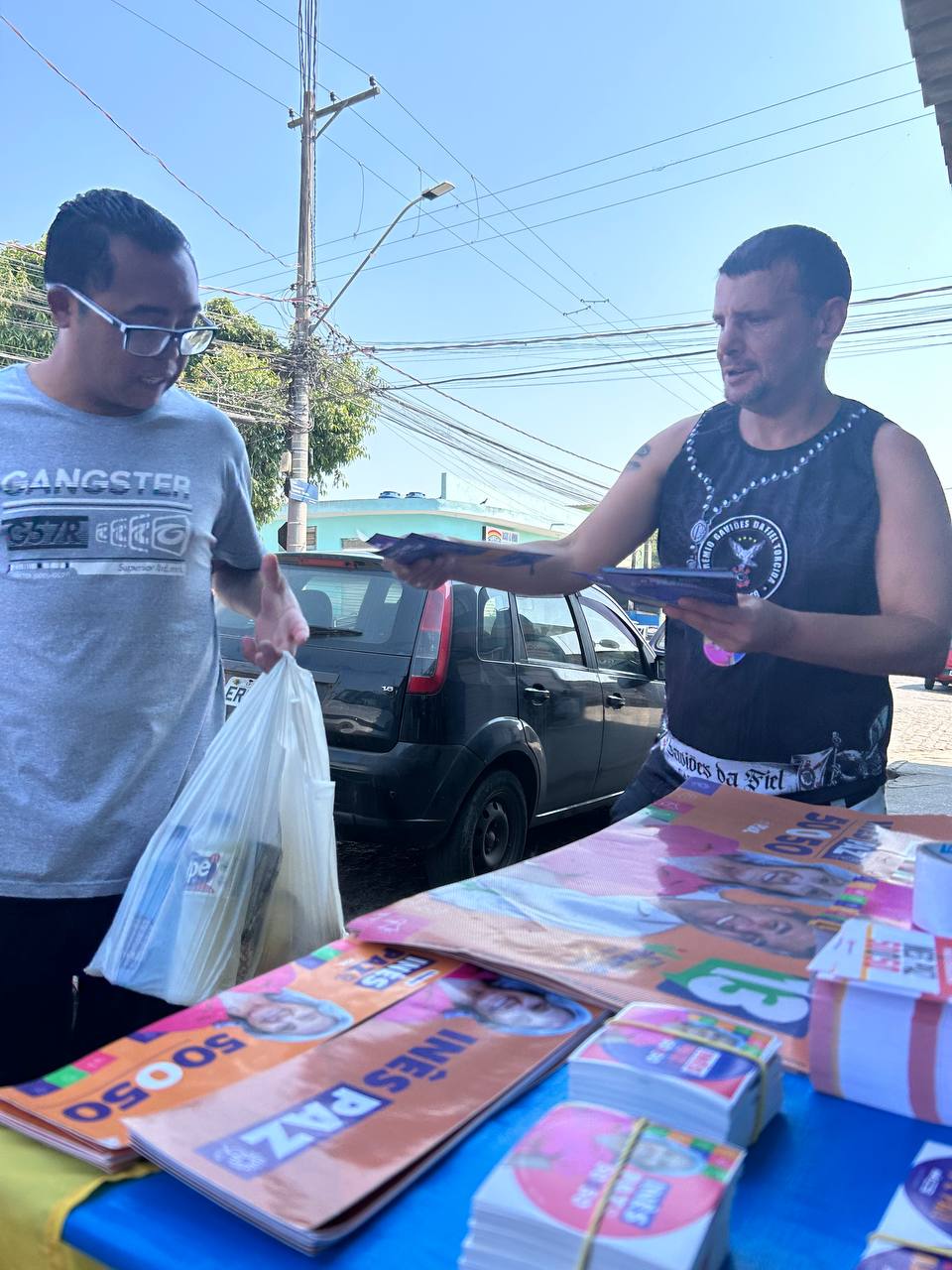 Marquinhos é morador de Jundiapeba e há anos acompanha a luta da Parlamentar por melhorias para os bairros e para a população; alinhado com as causas e reinvindicações de Inês desde a pré-campanha já começou a mobilizar a galera de Jundiapeba para participar dos eventos e lutas da mandata; e agora com o início da campanha montou uma banquinha para distribuir os materiais e ajudar Inês Paz à se reeleger.
