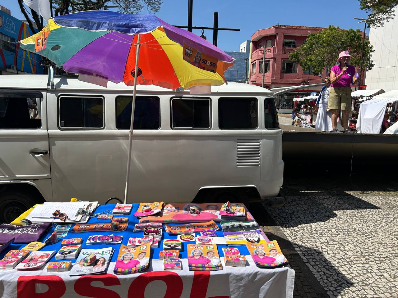 Na banquinha, energia boa, bate-papo e muito apoio como sempre, galera animada para a reeleição da Inês, fechando a semana com chave de ouro.