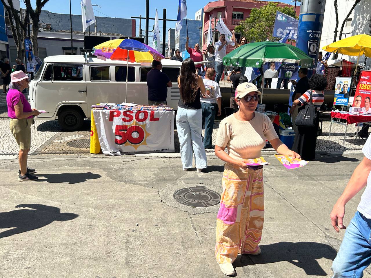 Com clima de esperança, o dia começou com caminhada pelo centro, visitando comércios locais e conversando com os trabalhadores e seguiu com comício do candidato à Prefeito para somar forças, unir apoiadores e reforçar a importância desse movimento para a cidade.