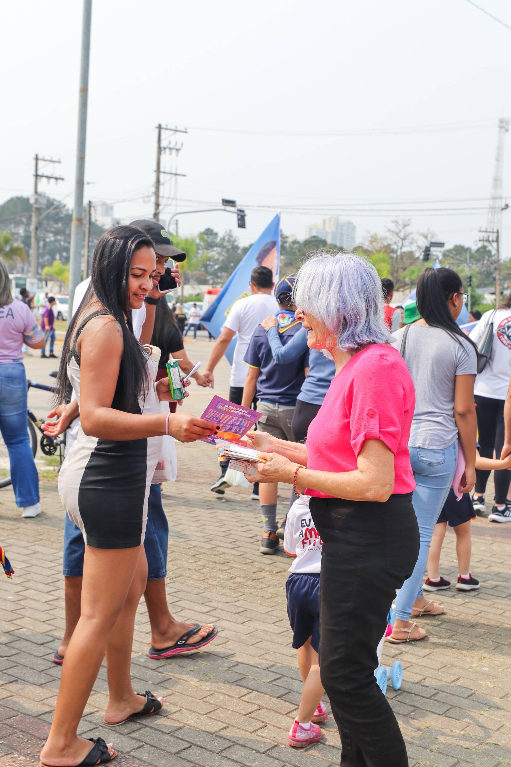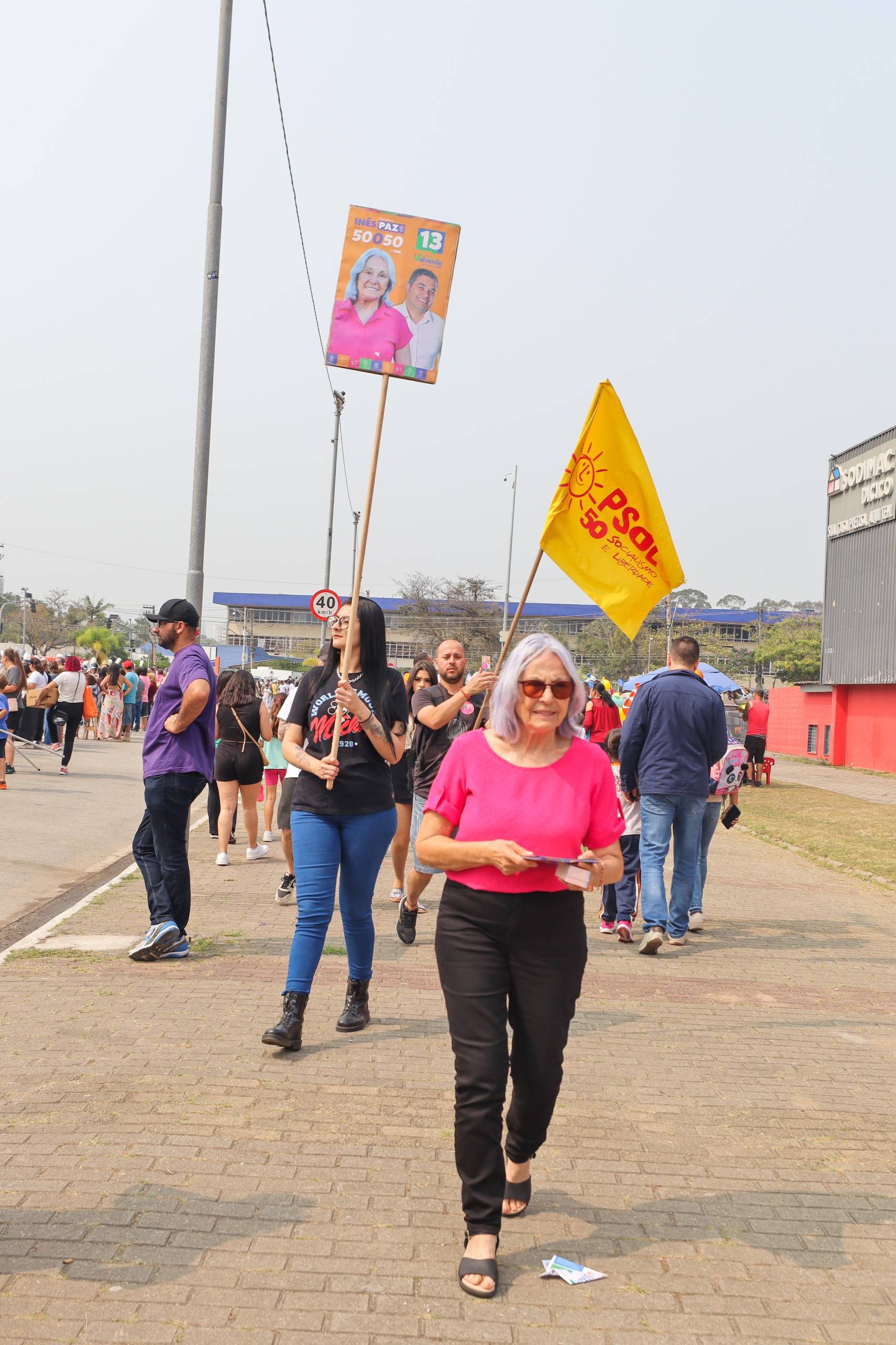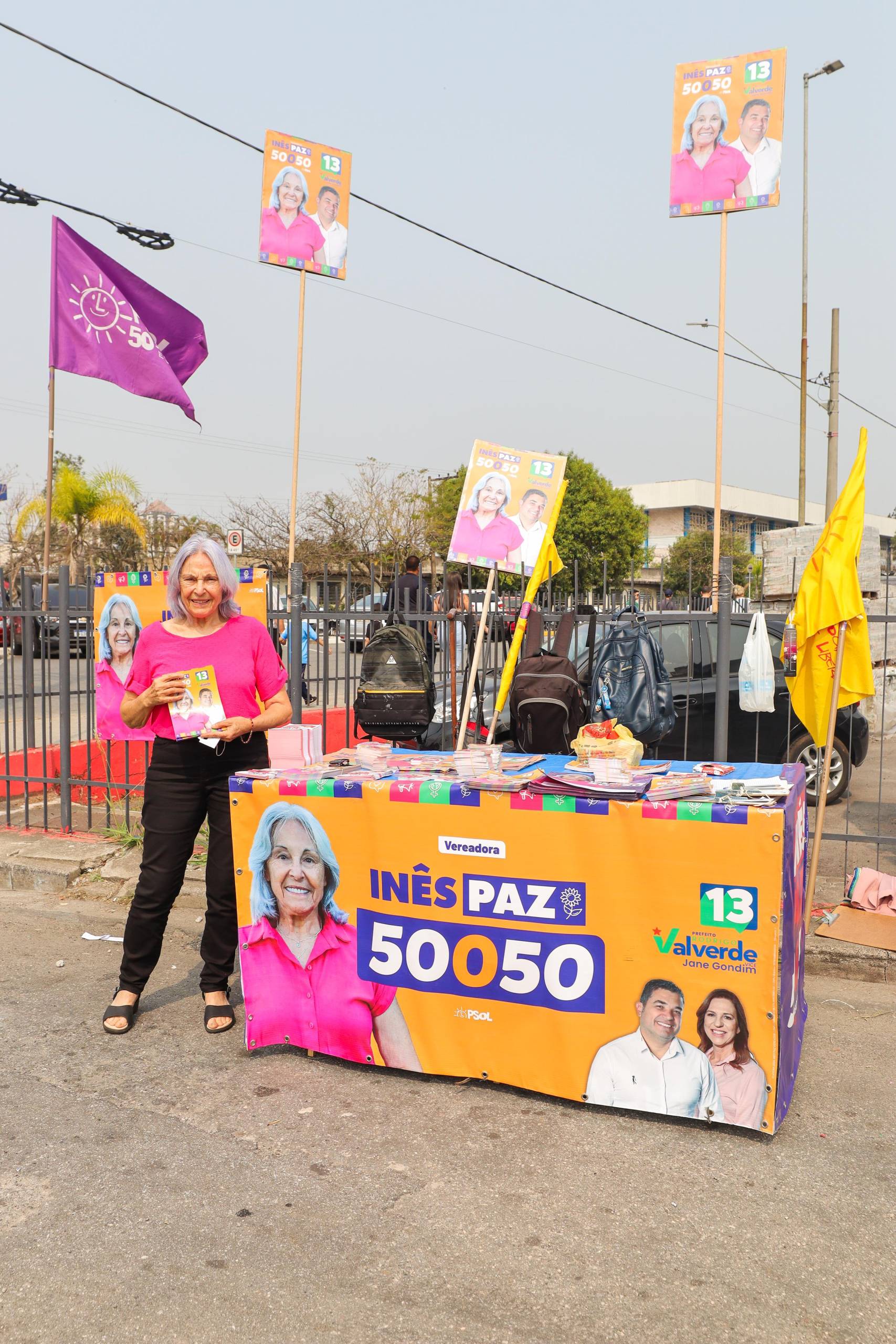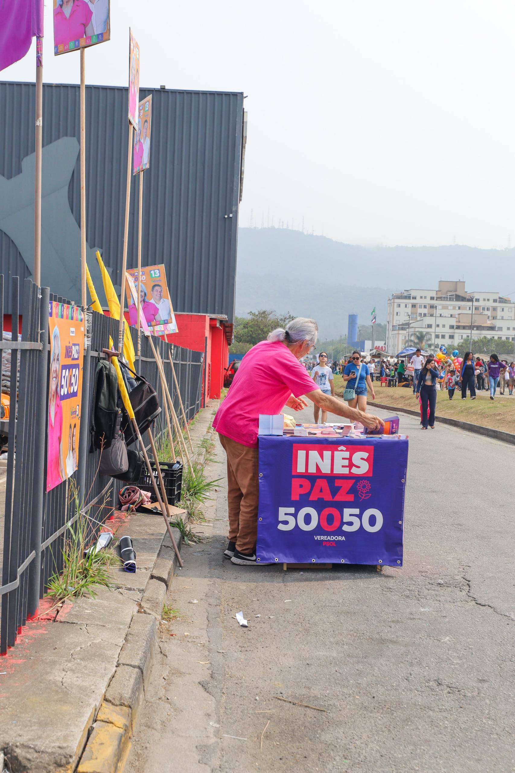 A Vereadora Inês Paz, prestigiou o desfile e reunida com amigos e apoiadores montou a banquinha, conversou com a população e aproveitou para distribuir materiais da campanha.