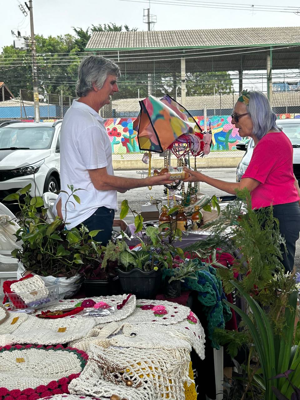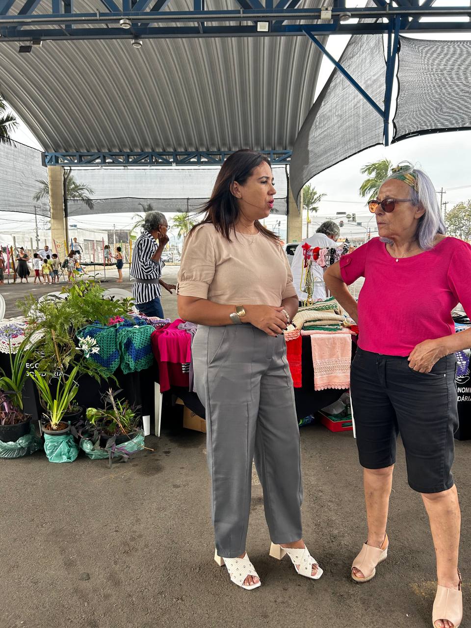 Celebrando os 86 anos de Jundiapeba, a Vereadora Inês Paz foi até o bairro e aproveitou para prestigiar a feira da Economia Solidária, organizada pela Incubadora Social.