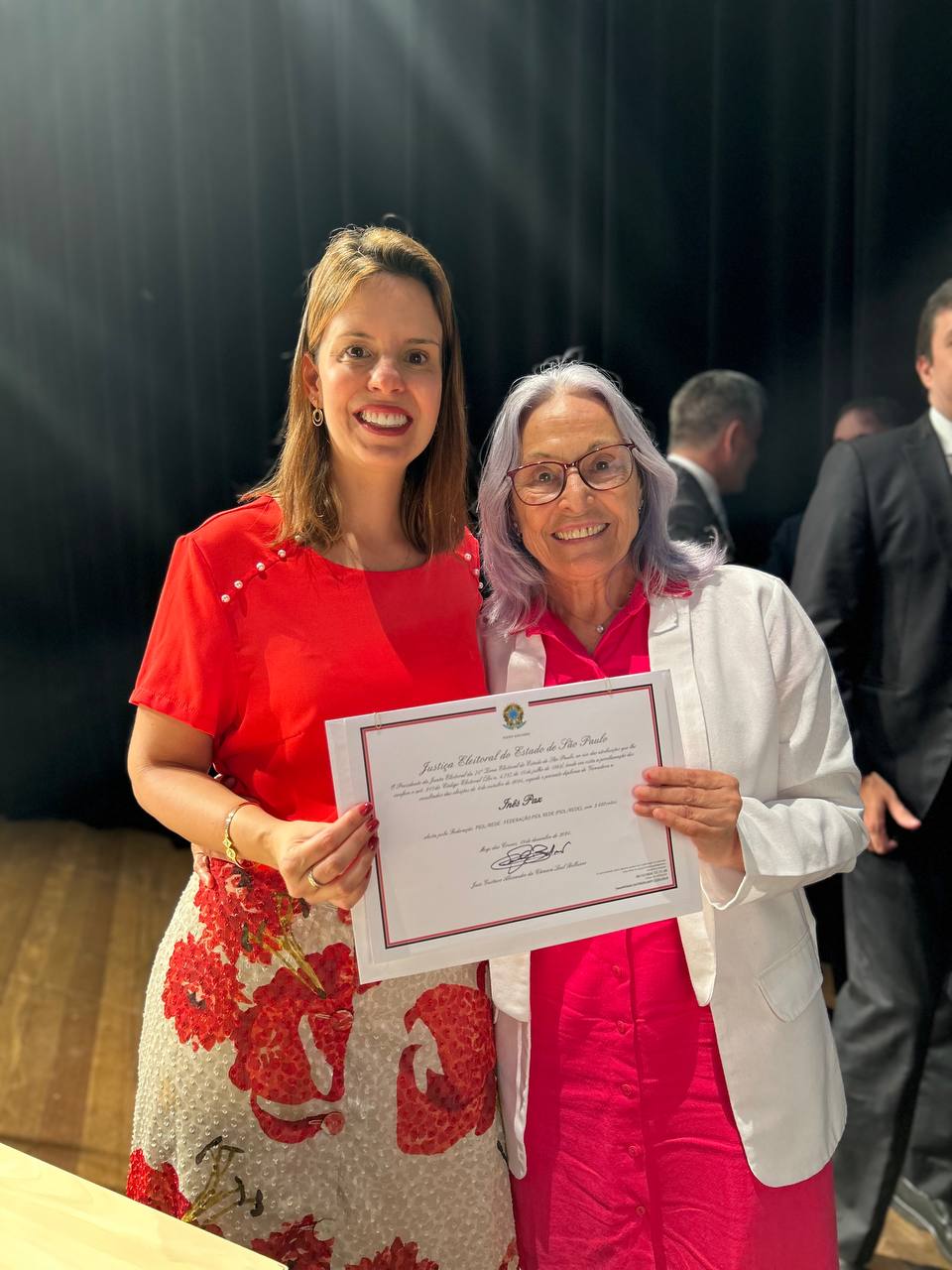 Nas redes, a Parlamentar registrou o evento e escreveu: “Oficialmente Diplomada e mais que preparada para seguir representando diversas lutas importantes por mais 4 anos na Câmara Municipal!”