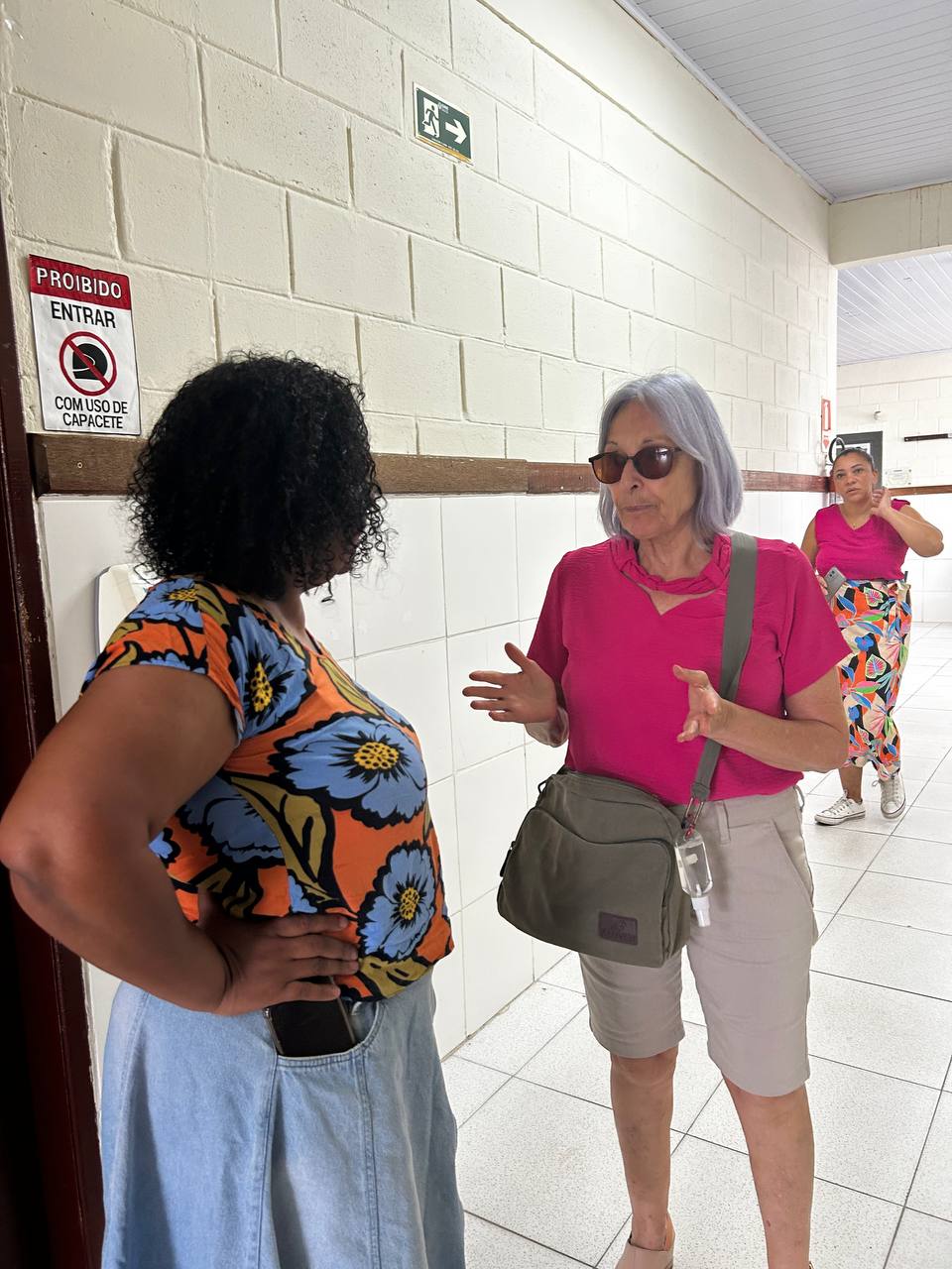 Nessa quarta-feira (15), a Vereadora foi até o CEIC Raio de Luz I, onde conversou com a presidente da associação, Sirlene, a diretora pedagógica das unidades, Andreia, e o funcionário do setor financeiro, Israel. Durante a reunião, a parlamentar buscou esclarecimentos sobre as denúncias de falta de pagamento e desvio de função das Auxiliares de Desenvolvimento Infantil (ADIs).