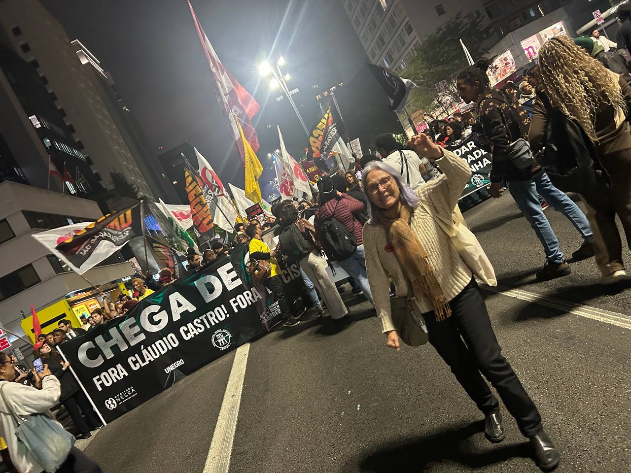 Na sexta-feira (31/10), marcou presença no ato contra a chacina no Rio de Janeiro, realizado no MASP, na Avenida Paulista, em solidariedade às vítimas e em defesa da vida da população negra e periférica.