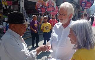 Inês Paz faz campanha com Boulos em Mogi Manhã chuvosa e friorenta. Dia 14 de