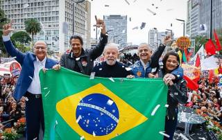 Inês Paz e seus companheiros. O Comício do ex-presidente Lula – PT aconteceu