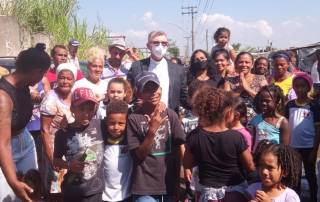 Bispo Dom Pedro Luiz Stringhini visita ocupação para prestar solidariedade Iduigues Martins, um morador,