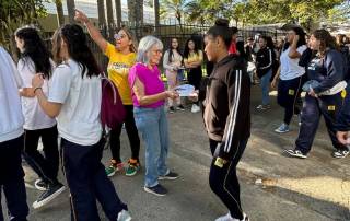 Vereadora conversa com a juventude estudantil Sexta-feira, 21/6. Panfletagem no Clube de Campo sobre o