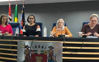 Secretária Adjunta explica Escola Clínica do TEA Da esquerda para a direita: Gislaine Reis,
