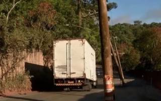 Poste no meio da via e ponte sem condições Dia 29 de junho. A vereadora