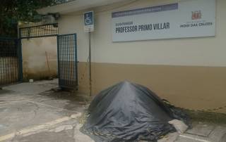 A E.M não tem salas adequadas e sofre com alagamentos Sala improvisada. A