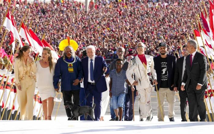 Junto com Lula, o povo subiu a rampa do Planalto Lula tomou posse no dia 1º de janeiro de 2023 e recebeu a faixa presidencial das mãos