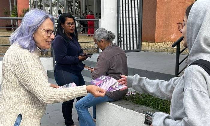 Dia 5/5. CEMFORPE. Panfletagem na formação dos profissionais de apoio A vereadora Inês Paz e sua equipe estiveram em frente ao CEMFORPE - Centro Municipal de Formação
