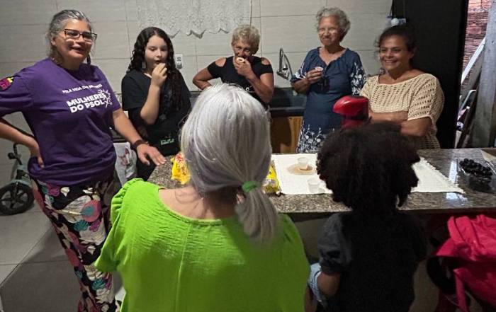 Núcleo PSOL Jundiapeba animado para a pré-campanha Domingo, 7/4. Casa da Alessandra Felix. Reunião do Núcleo dos filiados do PSOL Jundiapeba. Da esquerda para a direita: