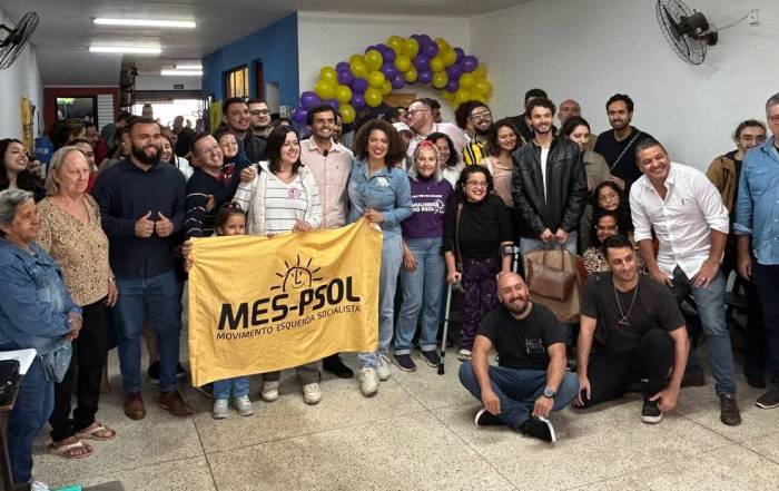 Deputadas e Vereadora unidas na Pré-Campanha. Sábado, 23/03. Cursinho Maio 68. Lançamento da pré-candidatura de Renan Castro a vereador, pelo PSOL. Em pé, da direita para