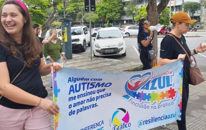 Manifestação no fórum em defesa dos filhos autistas Manhã da quarta-feira, 4/10. Mães da "Resiliência Azul" de volta às ruas. Agora, em frente do Fórum. Exigem que