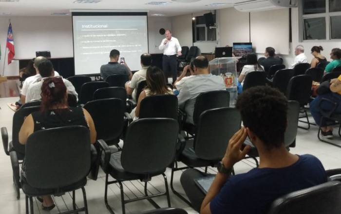 Prefeitura segue com reuniões "faz de contas" Quinta-feira, 24/8. Secretaria de habitação fez sua apresentação sobre orçamento na prefeitura. A palestra ficou por conta do secretário Carlos