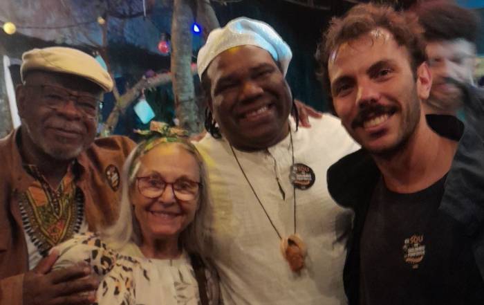 Programação das Senzalas às Favelas incluem muita música Inês e Ton. Ao Fundo, Fábio. Finalzinho de tarde do dia 12 de agosto. Sábado. Comemorar o