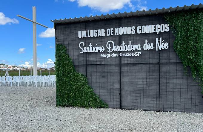 Santuário Nossa Senhora Desatadora dos Nós completa um ano Inês Paz e o bispo Dom Pedro Luiz Stringhini. Sábado, 20 de maio. Avenida das Orquídeas.