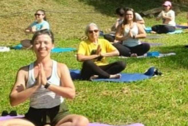 "Diretim da Roça", Yoga com a professora Leandra Brito Logo de manhãzinha. No dia 16 de fevereiro. Mais de 20 pessoas se reuniram no espaço rural "Diretim